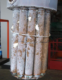 Advantage: Vacuum pyrolysis cleaning device can not only be used for cleaning various types of spinneret; also widely used in components, shell, metering pump cleaning. And it can also be specialized cleaning the filter which the TEG cleaning cannot be done. Fully reflects its excellent cleaning results, low operating costs, and easy to operate, safety, environmental protection and other advantages. Features and Advantages of New Vacuum Pyrolysis Cleaning Furnaces: 1、Better cleaning effect: can clean varies type of spinneret such as filament, staple fiber, profiled hole, superfine denier, composite spinning and so on, and also clean the component and shell as well. All can meet the user’s cleaning requirements, to achieve a very good cleaning effect. Some customers use vacuum pyrolysis cleaning furnace instead of TEG cleaning and fluidized bed furnace. 2、Low operating costs: only consume water and electricity without any other high-cost materials. After the vacuum cleaning, the spinneret can be cleaned only by ultrasonic cleaner. Workers operating strength is very low. 3、Better environmental performance: exhaust treatment equipment . A vacuum cleaning furnace with solid waste 70% - 80% without treatment, the remaining 20% were oxidized to form carbon dioxide and water vapor which itself environment is very good. Besides, a small amount of flue gas generated by the process passes through the tail gas treatment device. Further treatment,flue gas to be oxidation into carbon dioxide and water vapor, so that the environment is more clean. 4、Safe and reliable: using Siemens PLC to manage the equipment according to the program, not only high reliability, And has the following functions: ① Low water pressure alarm: to prevent water shortage cause the damage of vacuum pumps. ② Low vacuum alarm: to prevent the furnace body or seal leakage cause poor cleaning results. ③ Over-temperature alarm: When the furnace overheating occurs for whatever reason, the heating will be stopped in order, open the deflated valve to deflate, the pump shut down after delay to ensure that the equipment and the workpiece is not burned out. 5、Programmable control instruments: to ensure that the furnace temperature curve heating, to prevent the local part of the workpiece heating too fast; can make the workpiece within the furnace evenly heated to ensure the safety of the cleaning workpiece. 6、Multi-step furnace heating curve process: to ensure the reliable process of the flow of material in the furnace phase, the degradation stage, the oxidation stage, and guarantee a good cleaning effect. 7、The key components of the equipment, such as furnace lid, furnace, exhaust gas treatment device, gas scrubbing tower are made of stainless steel. 8、Vacuum pyrolysis furnace key technology - Vacuum Seal: we use a special high-temperature sealing material, can guarantee a good and durable high-temperature sealing, which is our company a major advantage. Photo Of Device: ![]() | ||||||||||||||||||||||||||||||||||||||||||||||||||||||||||||||||