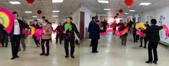 最后,志愿者代表來到老年公寓的活動中心,與老人們一同唱歌,教她們跳膠州大秧歌,現場一片歡聲笑語。