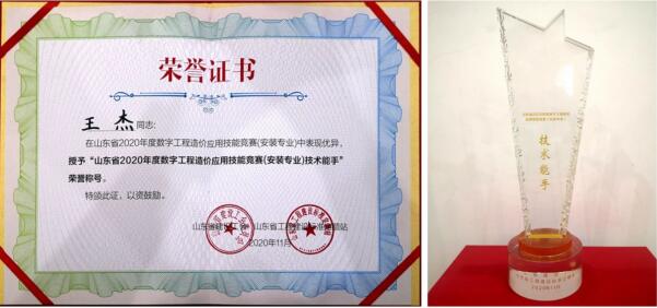 集團職工榮獲“山東省2020年度數字工程造價應用技能競賽(安裝專業)技術能手”稱號