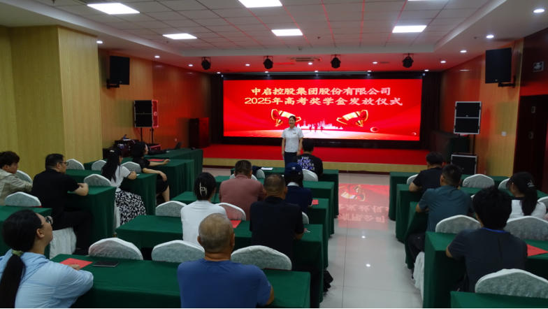 8月9日下午,中啟控股集團在中啟大廈二樓多功能廳舉行2025年職工子女高考獎學金發放儀式。集團黨委副書記、監事會主席張桂香參加儀式,共發放獎學金1.2萬元。