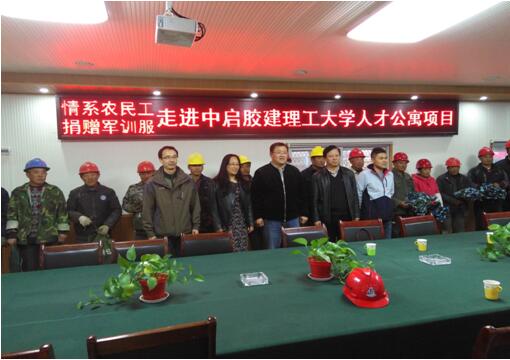 青島理工大學(xué)土木工程學(xué)院黨總支向我公司人才公寓項(xiàng)目農(nóng)民工捐贈(zèng)軍訓(xùn)服