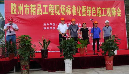 8月15日由膠州市城鄉建設局主辦的精品工程現場標準化暨綠色施工觀摩會在我公司施工的中啟大廈工程施工現場隆重舉辦。膠州市城鄉建設局副局長王世梅,膠州市經濟技術開發區建設局局長姜大全,膠州市建筑工程質量監督站站長于清正,青島海大工程監理咨詢有限公司董事長于洪波,中啟控股集團總裁郭道盛,中啟控股集團常務副總裁張增昌等領導以及全市施工、監理單位的質量安全分管領導、機構負責人、項目負責人、技術負責人等220余人參加了本次大會。
