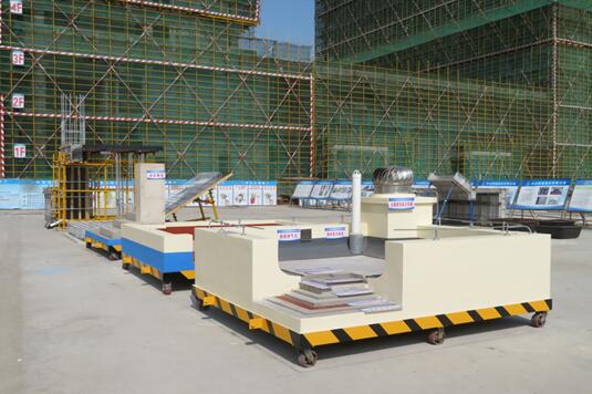 安全文明施工方面:宿舍安裝煙感報警器、施工現場安全體驗區、施工現場護欄、消防器材配備及定型化設施利用,樓內臨時消火栓、管網設置;定型化配電箱防護棚;施工機具亮點展示、高大模板支撐體系等創新管理措施。