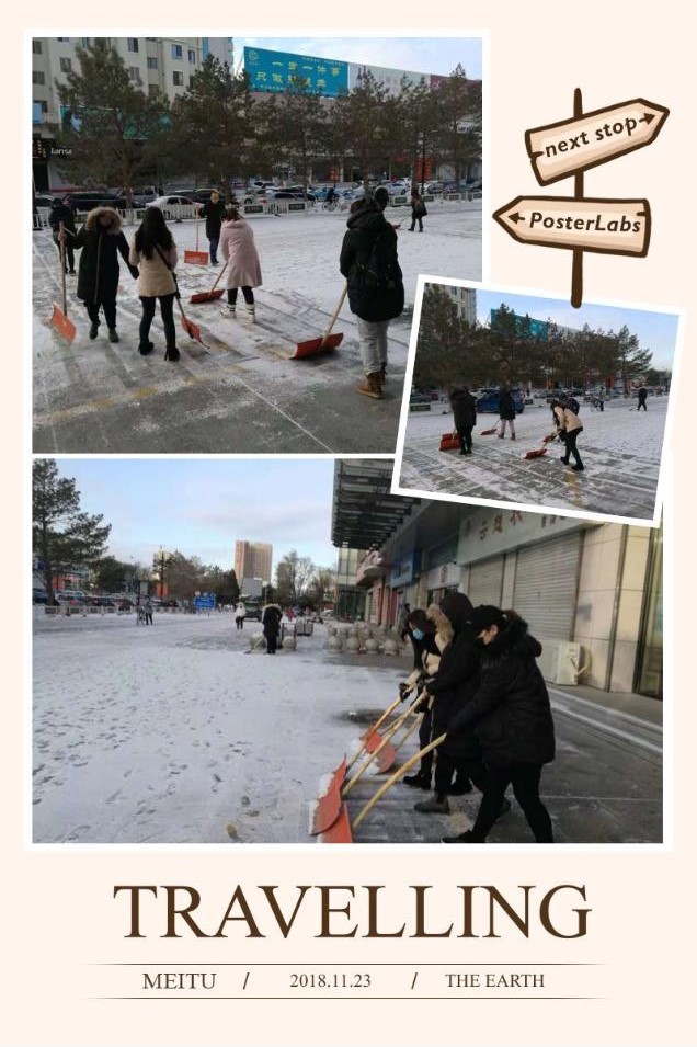 經過不到一個小時的戰斗,積雪不知不覺的讓大家伙給清理干凈了,道路也漏出了它原來的樣子,好像也漏出了笑臉。雖然我們員工的衣服臟了,鞋子也濕了,但是為了咱們的顧客和員工,開辟通暢的道路,我們每個人臉上都洋溢著笑容,好美的一幅畫,真的很溫暖很欣慰。