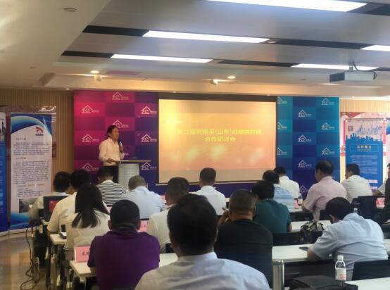本次研討會在青島康大財富中心舉行,筑集采邀請了50余家供應商,采購商代表南通三建、濰坊昌大及我公司共計110余人;南通三建建設板塊北方區域總經理兼山東公司總經理徐炎、筑集采執行副總裁王懷宇出席了此次會議。