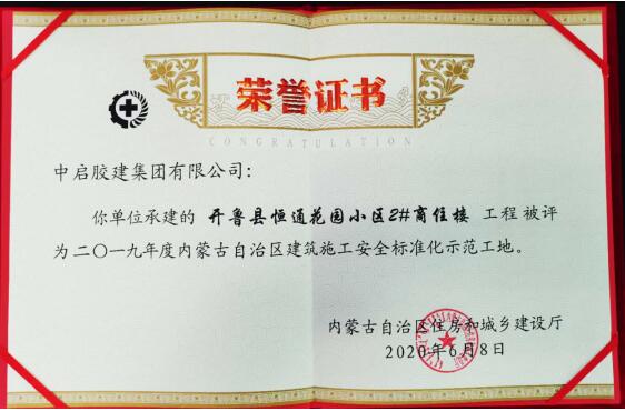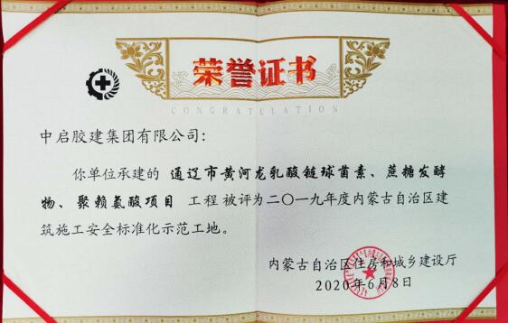 7月3日,內蒙古通遼市住房和城鄉(xiāng)建設局傳來喜訊,建筑二公司施工的通遼市乳酸鏈球菌素、蔗糖發(fā)酵物、聚賴氨酸項目”和“開魯縣恒通花園小區(qū)2#商住樓獲得2019年度內蒙古自治區(qū)建筑施工“安全標準化示范工地”榮譽稱號。