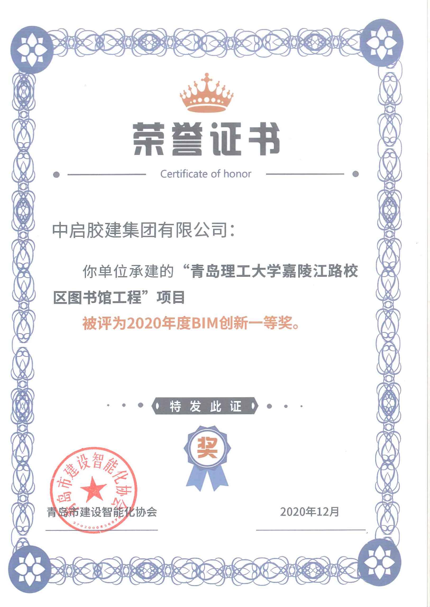 日前,在青島市建設智能化協(xié)會組織的2020年度智能化系統(tǒng)優(yōu)秀成果項目及BIM創(chuàng)新活動評選中,中啟膠建集團華東公司施工的青島理工大學嘉陵江路校區(qū)圖書館項目榮獲BIM創(chuàng)新一等獎,易邦生物科技產(chǎn)業(yè)園項目榮獲BIM創(chuàng)新優(yōu)秀獎。這是我公司首次榮獲該獎項。