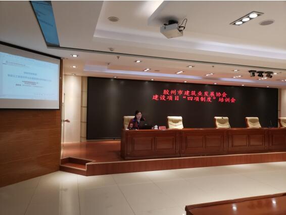 5月8日上午,膠州市建筑業(yè)發(fā)展協(xié)會(huì)協(xié)同膠州市住建局在行政服務(wù)中心東樓裙樓401會(huì)議室舉行建設(shè)項(xiàng)目“四項(xiàng)制度”培訓(xùn)會(huì),由中啟膠建集團(tuán)有限公司安全生產(chǎn)管理部魏翠英主講,90家建筑總承包企業(yè)以及部分外地入膠施工總承包企業(yè)分管經(jīng)理參加了培訓(xùn)。