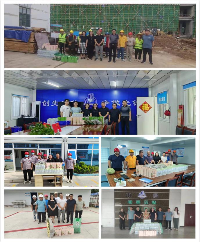 驕陽似火,酷暑難耐,為切實(shí)做好夏季防暑降溫工作,保障職工的生產(chǎn)安全、身心健康和各項(xiàng)目平穩(wěn)有序進(jìn)展,自7月下旬起,由集團(tuán)黨委副書記、董事副總裁張桂香、安全生產(chǎn)管理部經(jīng)理劉堯、工會(huì)主席劉博及安全生產(chǎn)管理部相關(guān)人員組成慰問組,頂著炎炎烈日到集團(tuán)各基層單位和重點(diǎn)工程項(xiàng)目開展“夏送清涼”慰問活動(dòng),為始終奮戰(zhàn)在一線的“戰(zhàn)士”們,精心準(zhǔn)備了實(shí)用的綠茶、綠豆、礦泉水等“清涼”物品,在炎熱的夏季送去陣陣“清風(fēng)”,拉開了今年集團(tuán)“夏送清涼”活動(dòng)的序幕。