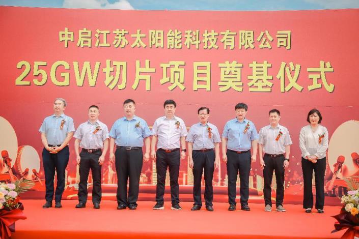 8月28日上午,中啟江蘇太陽能科技有限公司年產25GW高效單晶硅切片項目奠基儀式在項目現場隆重舉行。