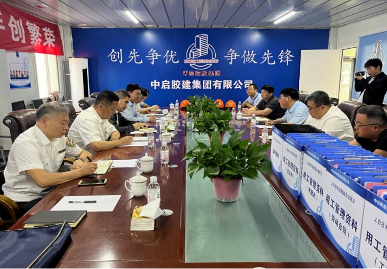 2023年5月25日下午,青島市根治拖欠農(nóng)民工工資工作領(lǐng)導(dǎo)小組辦公室主任,市人力資源和社會(huì)保障局黨組成員、副局長(zhǎng)辛廣軍帶隊(duì)一行7人,在膠州市委常委、統(tǒng)戰(zhàn)部部長(zhǎng)、副市長(zhǎng)董如增及相關(guān)部門負(fù)責(zé)同志的陪同下,到公司及項(xiàng)目走訪調(diào)研。中啟控股集團(tuán)黨委書記、總裁、中啟膠建集團(tuán)董事長(zhǎng)張?jiān)霾袉⒛z建集團(tuán)副總經(jīng)理劉堯及相關(guān)人員陪同調(diào)研。