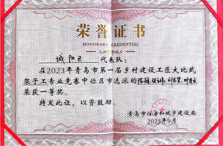 9月22日,青島市首屆鄉(xiāng)村建設帶頭工匠培訓暨第一屆鄉(xiāng)村建設工匠比武大賽完美落幕,中啟膠建集團華東公司代表城陽區(qū)選派的參賽選手在比賽中表現(xiàn)突出,成績優(yōu)異。